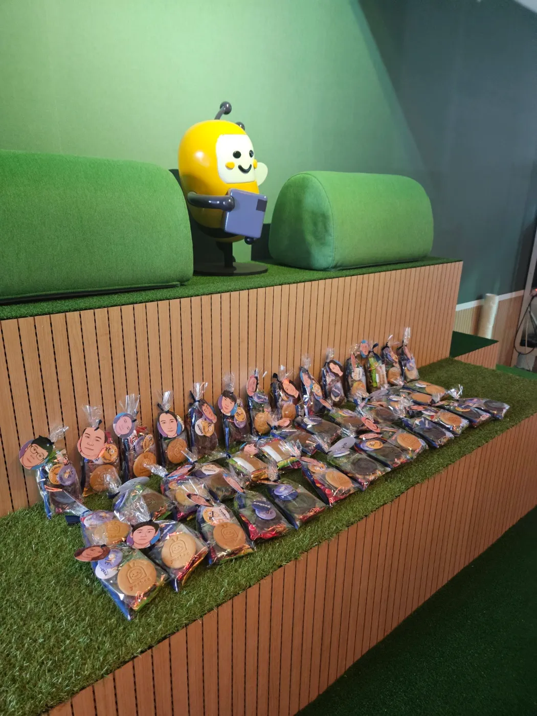 음.. 뱃지만 주기는 아쉬우니까 예스비&허니비 쿠키도 넣고, 일할 때 심심하지 않도록 요깃거리도 넣어서….