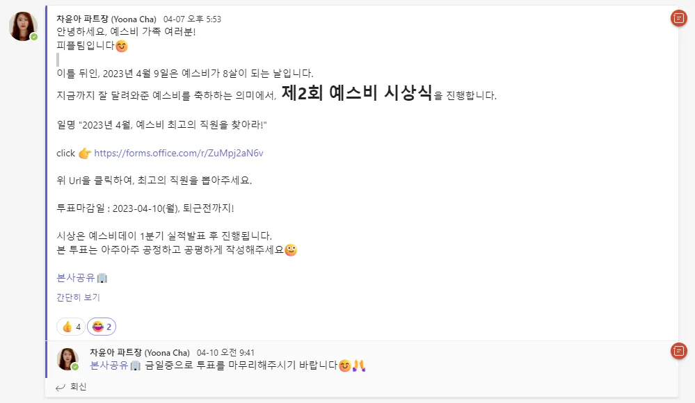 예스비 창립 8주년을 맞이하여, 1분기 예스비데이와 함께 제2회 예스비 시상식을 개최하였습니다.