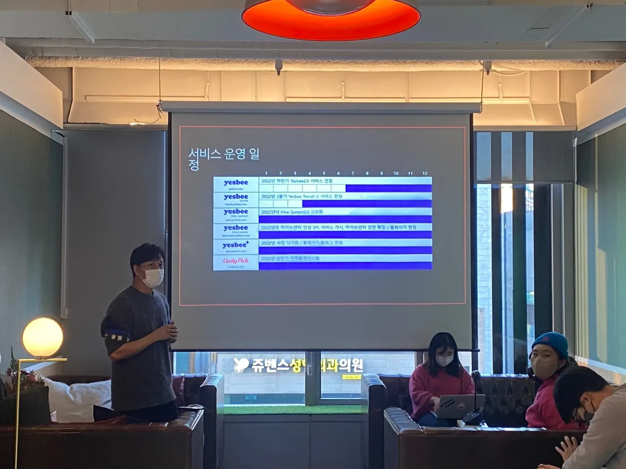 다음 순서로는 전략본부를 총괄하시는 남 이사님! 께서 예스비 관련 서비스 운영 일정을 표로 정리해 주셨습니다