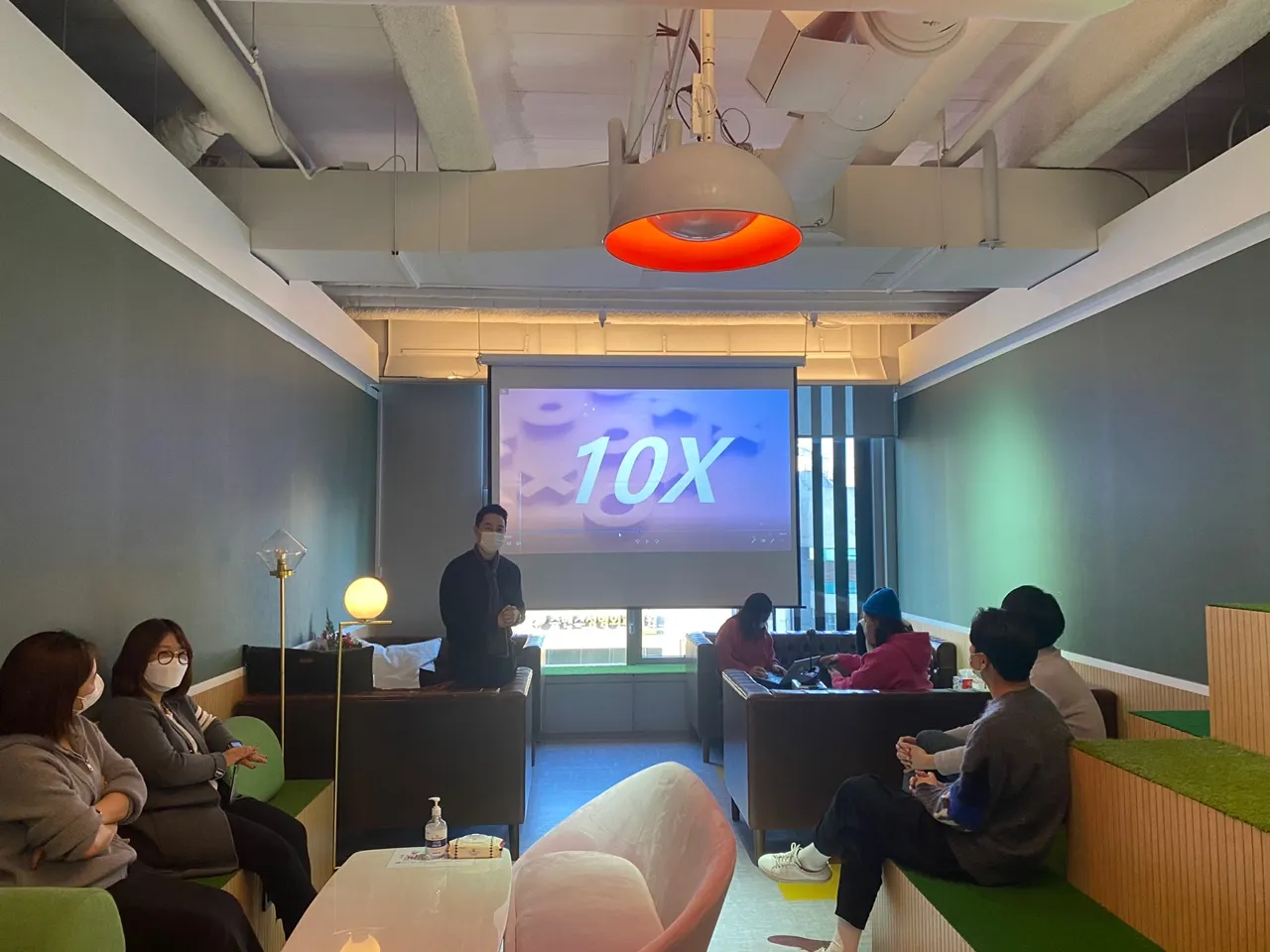 송년회의 시작은 대표님의 개회사로! 10X 성장하자는 멋진 포부를 담고 있는 메시지였답니다