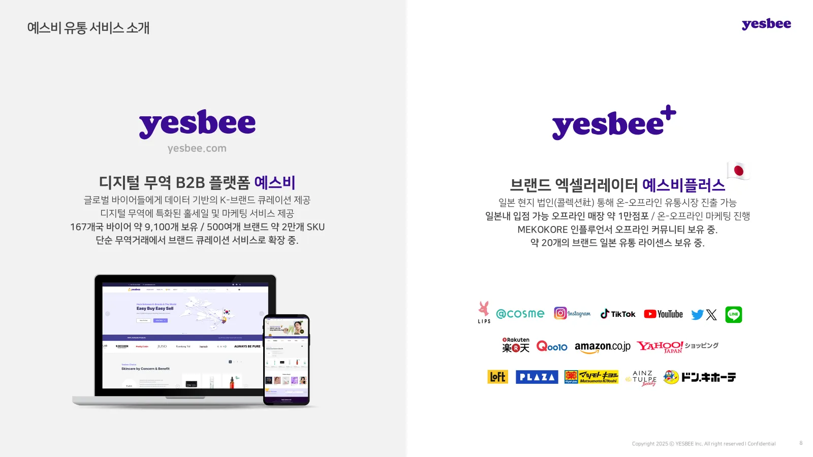 예스비플러스는 수출바우처 선정기업 대상으로 일본 인큐베이팅 진행부터 큐텐 유통대행 등 유통까지 연계된 서비스를 제공하는 공식 수행기관입니다. 온,오프라인 유통부터 마케팅까지 각 브랜드와 현재 트렌드에 맞춘 서비스를 제안합니다.