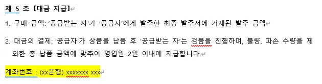 계약서 작성 시 아이오앤코코리아에서 대금 지급 시, 지급 항목에 거래처 계좌번호를 작성해 주세요.