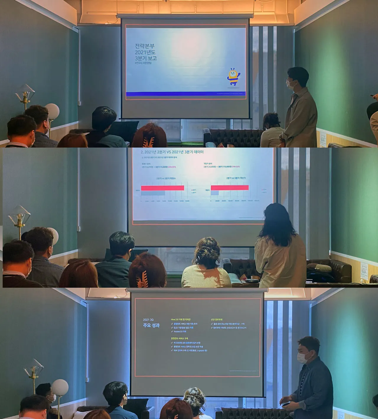 이번에 운영팀 + 연구소로 새롭게 꾸려진 전략본부 역시 주요 성과를 바탕으로 3분기 보고를 멋지게 설명해 주셨습니다!