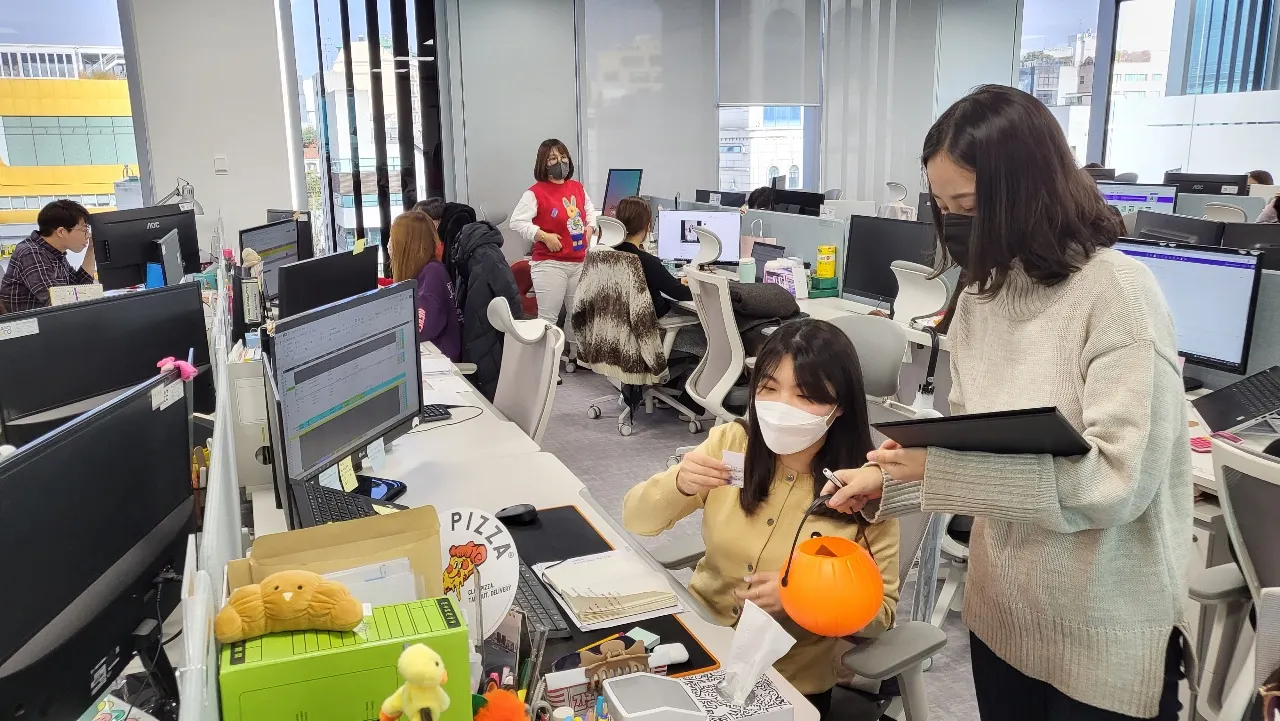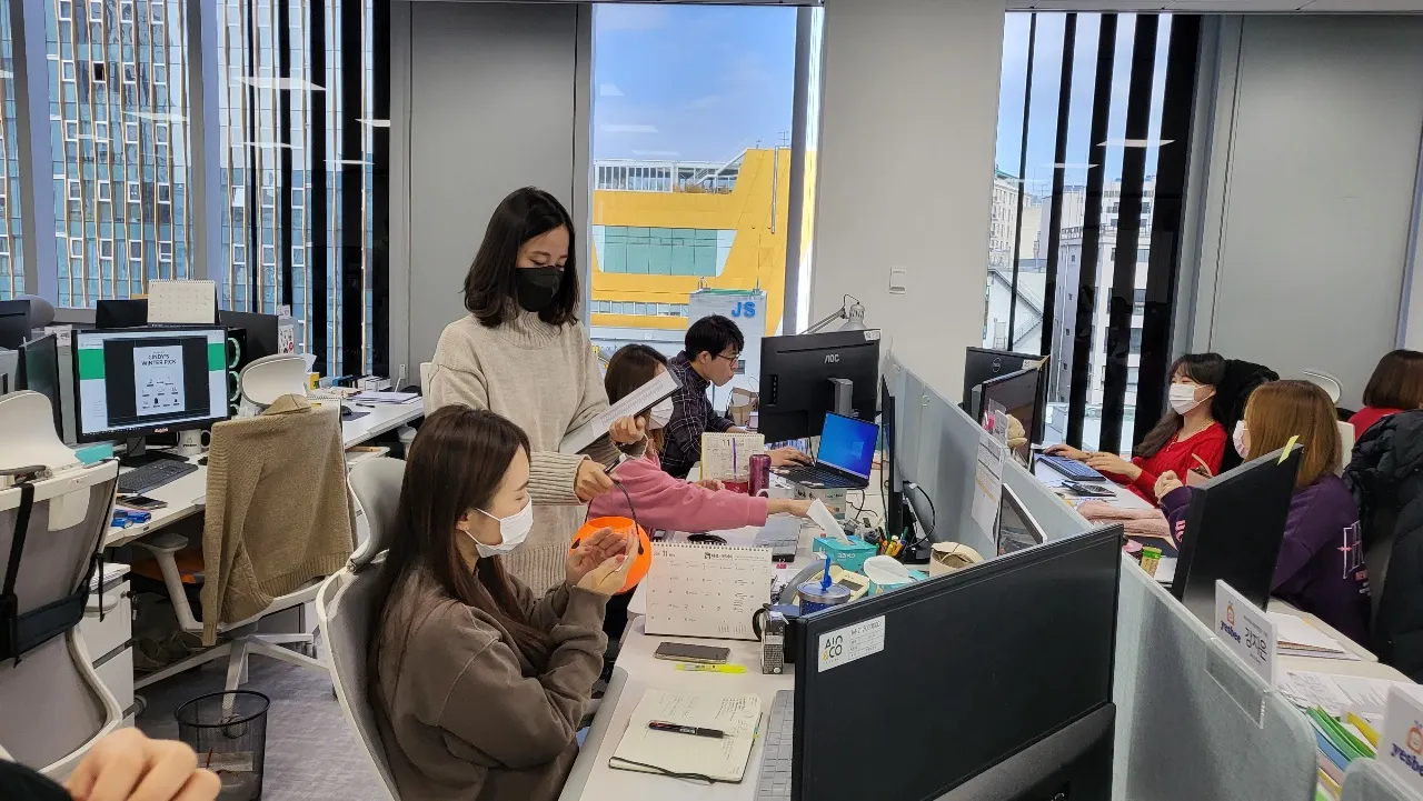 비밀 서포터즈 추첨은 제비뽑기 형식으로 랜덤하게 진행 되었는데요! 전 직원 참여를 독려하기 위해 직접 자리로 찾아가는 서비스~! 다행히 문전박대를 당하지는 않았답니다 >.<